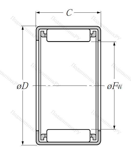 Игольчатый подшипник HK 3012 имеет неразъемную конструкцию, в которую входят игольчатого вида тела качения и наружная штампованная шина. Как правило, является однорядным, без каналов для подачи смазочного материала.